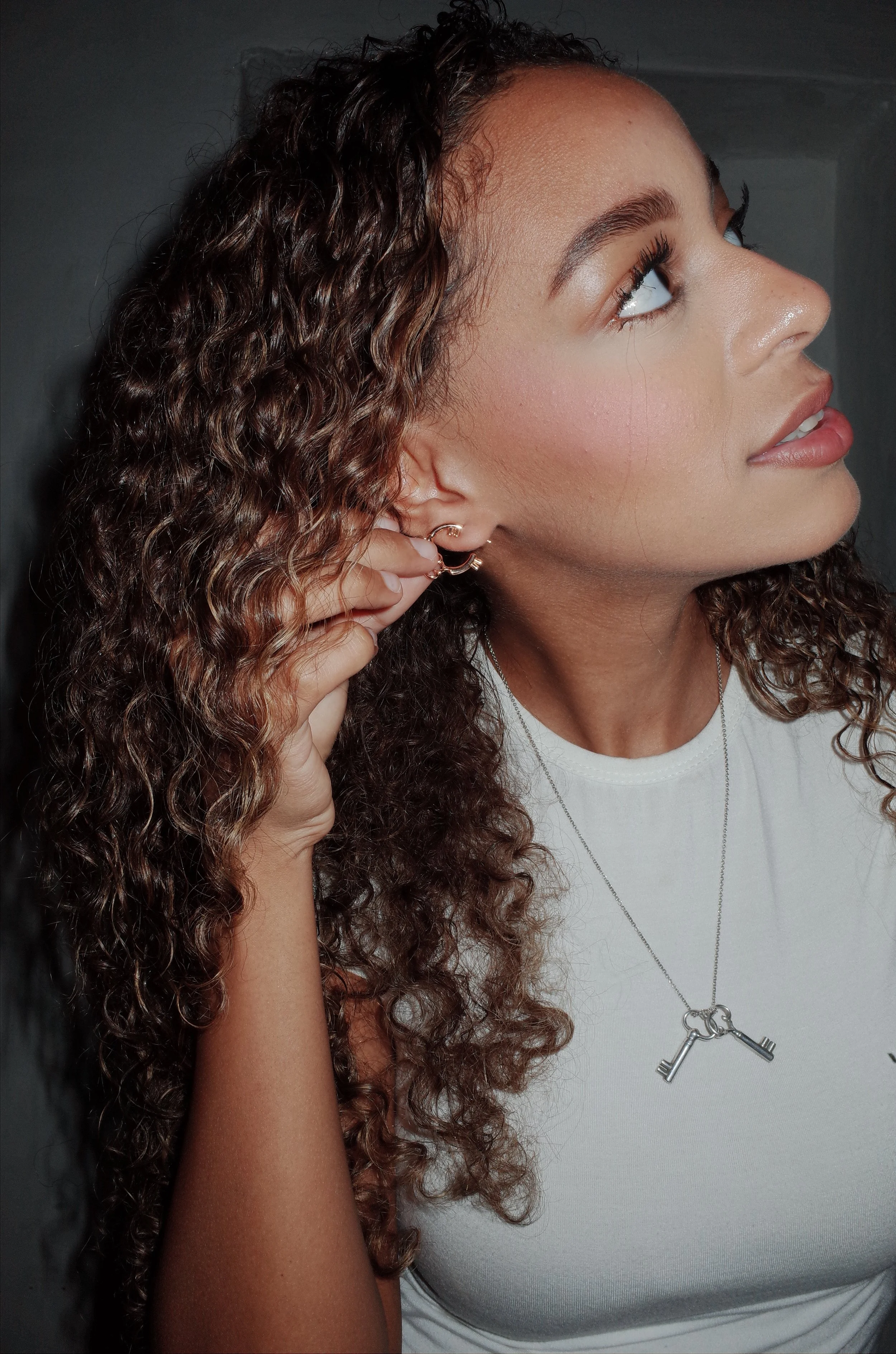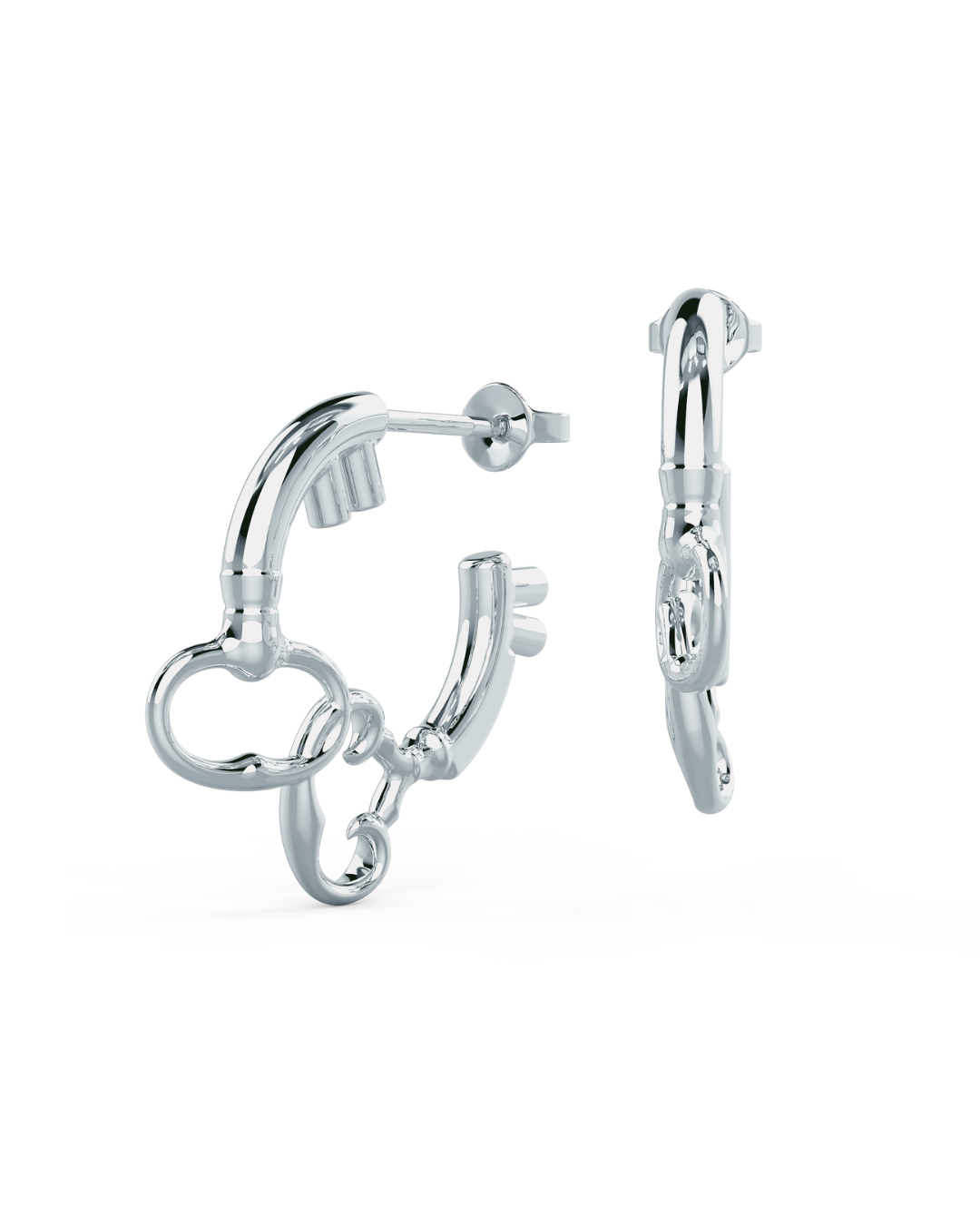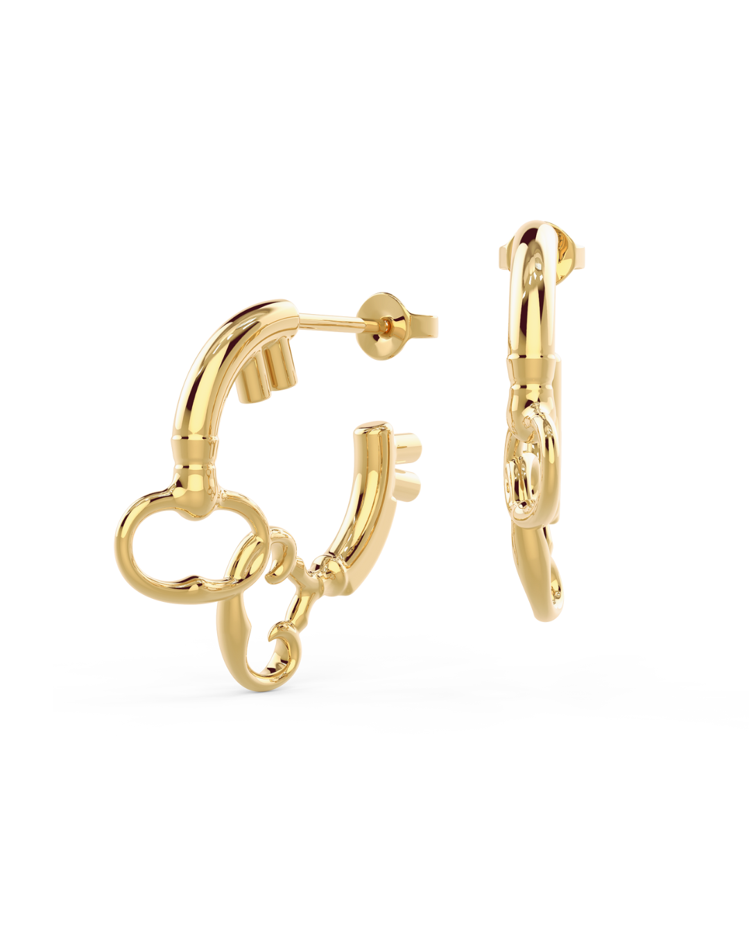 a contemporary expression of the eternal return collections signature motif, the hoop key earrings bring lightness to symbolism. suspended from graceful hoops, the keys sway gently with each motion, a dance between freedom and belonging
